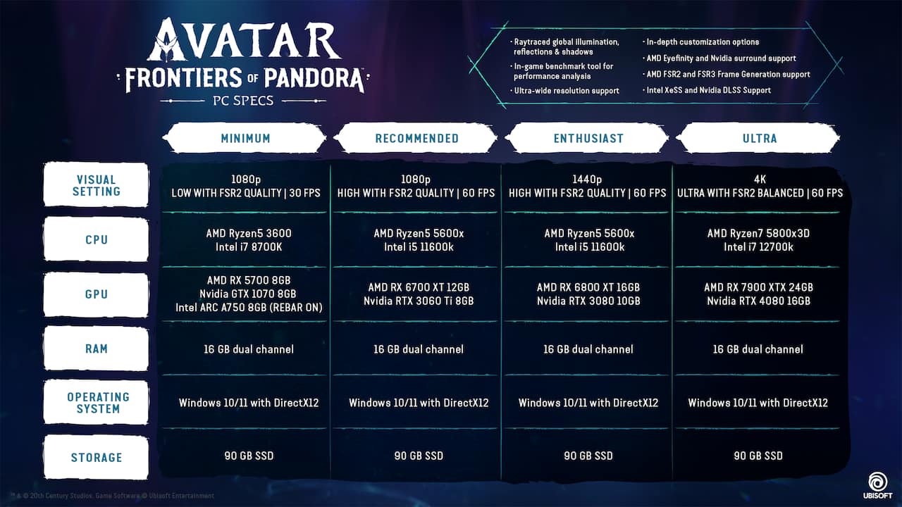 Avatar: Frontiers of Pandora will push the limits of immersion with extraordinary level of detail, rendering, density, and immersive audio.